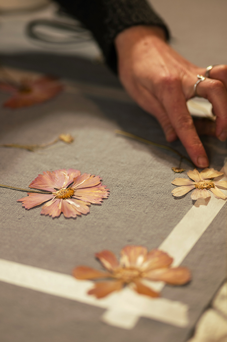 Flower pressing, by contrast, moves slowly. Each stem is gathered, arranged and laid carefully between layers before being left to dry over time. It cannot be hurried.