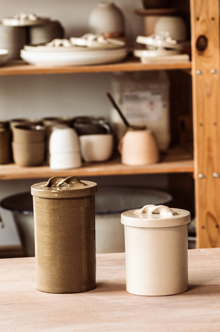 You can feel that in her jars. They do exactly what they’re meant to do. They sit neatly into daily life. But there’s a quiet sense of consideration in them too. The weight in your hands. The way the lid settles, its gently twisted handle sitting neatly between your fingers. The slight variation that reminds you it hasn’t come off a production line. Objects that are made to be used, and enjoyed in the using.