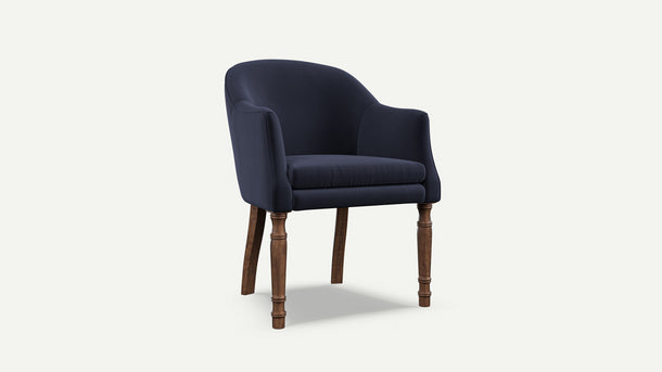 - A classically English, elegantly curved library chair