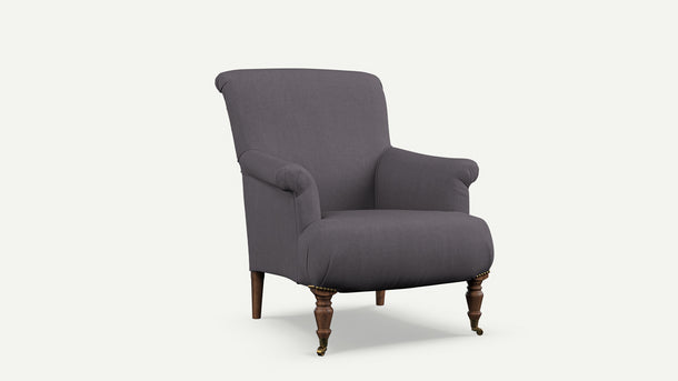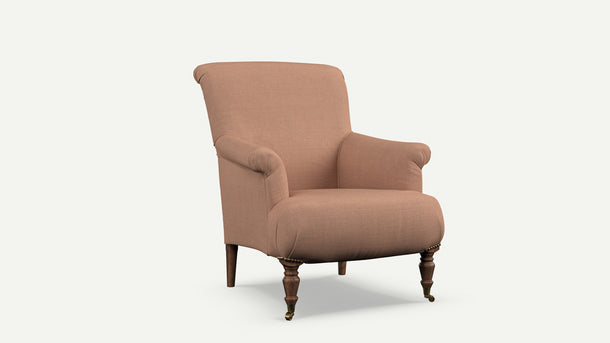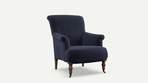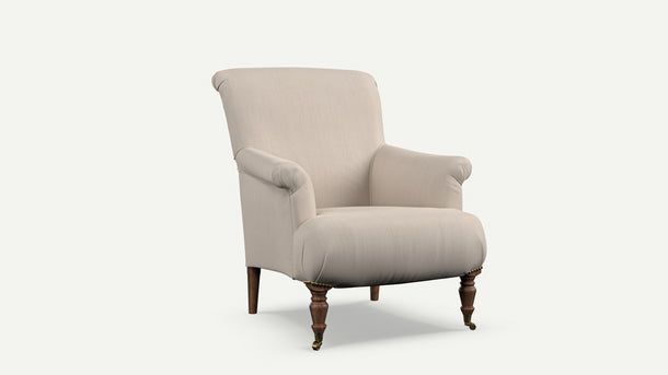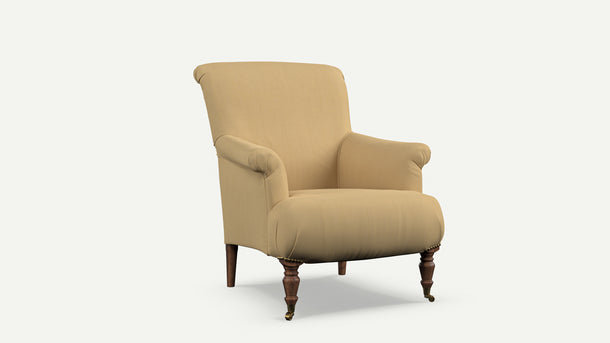 - A classic English reading chair with elegant curves