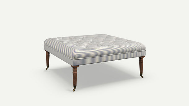 Freyer Footstool, Square, Black Ticking Stripe