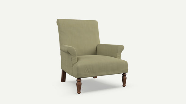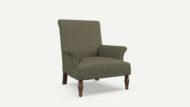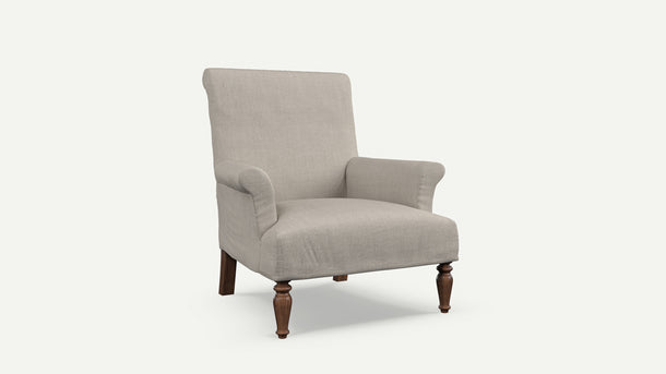- A handsome loose-covered armchair with heritage appeal