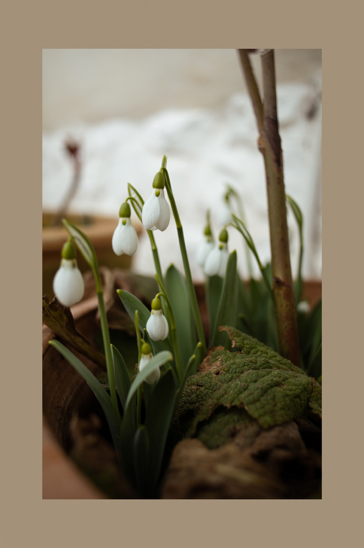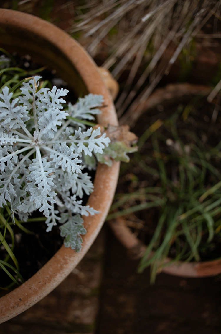 There’s also a smattering of snowdrops around, bringing life to the pots that are waiting patiently for spring. These should be abundant with roses by then. The Dusty Miller is adding a little colour to some otherwise rather bleak looking pots with its beautiful dusky blue foliage. It has been visible throughout the whole of winter and looks rather sensational on a frosty morning.