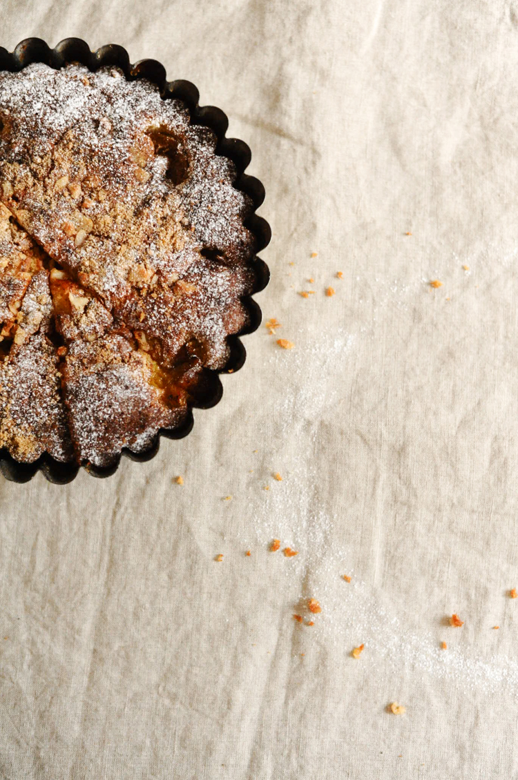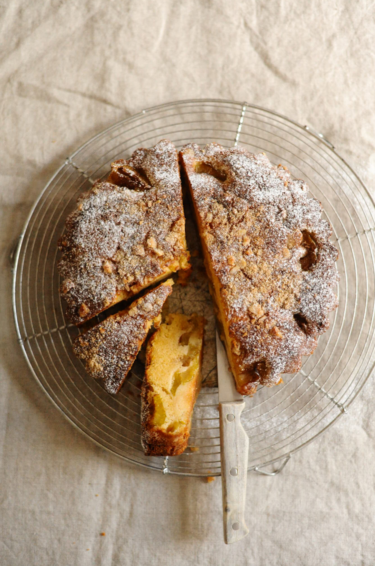 9. Allow to cool completely before removing from the tin, and serve a hearty wedge with crème fraîche and a dusting of icing sugar.